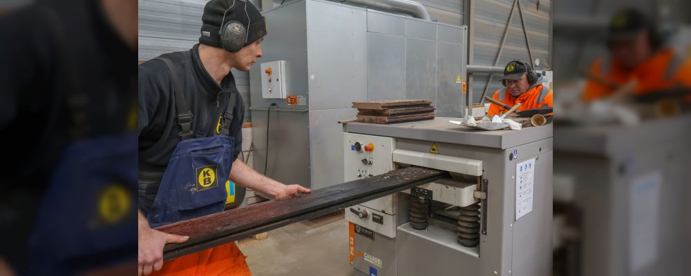 Lees meerIn de werkplaats van het Circulair Depot Lelystad wordt innovatieve duurzaamheid verbonden met iets dat minstens zo waardevol is: maatschappelijke meerwaarde. Met een gepatenteerde techniek krijgen oude hardhouten damwandplanken een nieuw leven. De productie ligt letterlijk in handen van jongens met een afstand tot de arbeidsmarkt. Wie graag met zijn of haar handen werkt en bereid is om al lerende vakbekwaam te worden, vindt hier een werkplek met toekomstperspectief. Bedrijfsleider Harry Post en voorman Cor Korthoef vertellen enthousiast over de circulaire en sociale win-win binnen Beens Speciale Projecten.