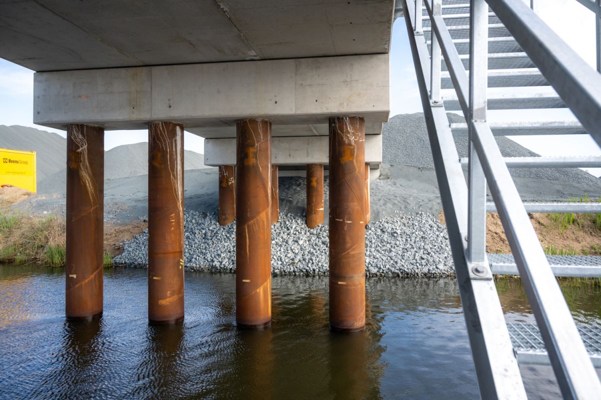 Een mooie robuuste oplossing waar dumpers en kranen van ca. 90 ton gebruik van kunnen maken om schepen te laden en te lossen. In december is de realisatieovereenkomst getekend zodat het werk begin 2021 kon worden opgestart met een uitdagende opleverdatum van 1 mei 2021. Op 7 mei is de de steiger in gebruik genomen!
