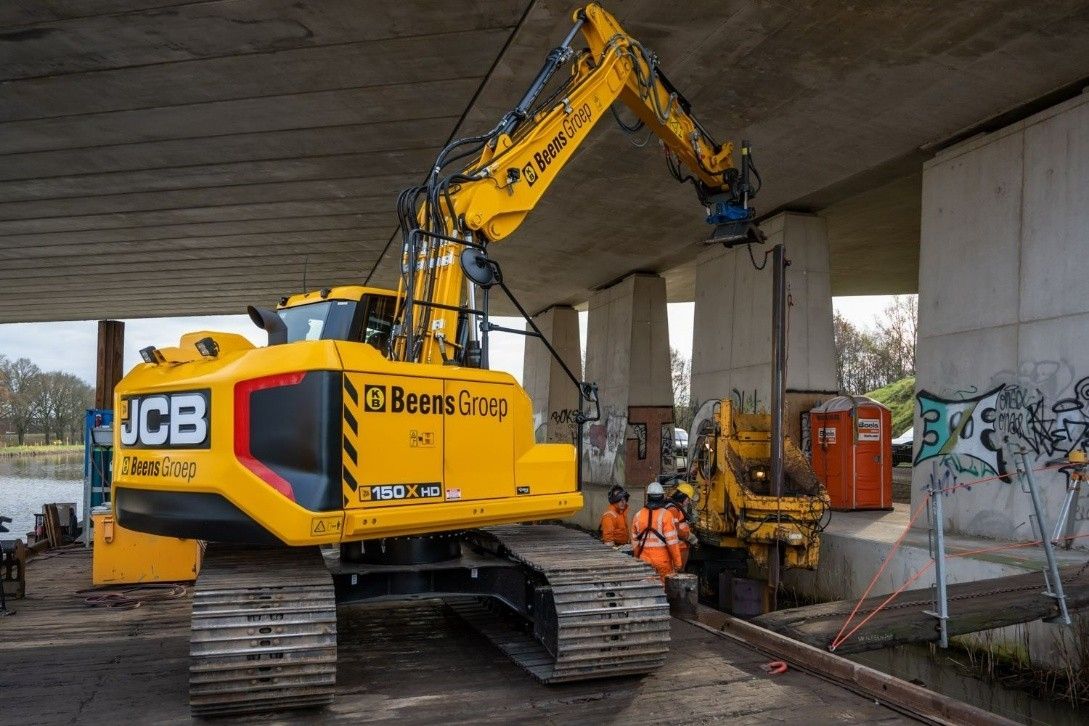 Uitgerust als funderingsmachine en hijskraan