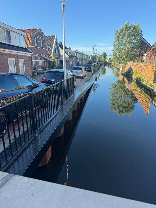 Toen John van Zanten van de renovatieplannen voor de kades van de Duikersloot hoorde, maakte hij zich meteen grote zorgen. Zijn huis aan de Polanenkade staat op ‘losse grond’, kwetsbaar voor schade bij grote ingrepen voor zijn deur. Samen met enkele andere buurtbewoners tekende hij bij gemeente Haarlemmermeer bezwaar aan. Die gaf de opdracht voor het vernieuwen van de kademuren en het maaiveld aan Beens Groep. Vanaf de start van de uitvoering in mei 2024 volgden John en buurman Piet Kreike de werkzaamheden met argusogen. Hun vertrouwen in de aanpak groeide echter met de week. Inmiddels ligt de kade er weer als nieuw bij. Samen met uitvoerder Johannes Beens en projectleider Gert Beens kijkt John tevreden terug. Projectleider Ron Kardol en werkvoorbereider Leendert-Jan Korsuize, betrokken namens de gemeente Haarlemmermeer, zijn blij met de oprechte waardering voor de uitvoering en het eindresultaat. De Duikersloot in Halfweg ligt ingesloten tussen de Polanenkade en de Prins Hendrikkade. De watergang maakt deel uit van de Rijnlandse boezem, een waterstelsel bedoeld om het teveel aan water af te voeren. De woningen langs de kades zijn gebouwd op veengrond en daardoor gevoelig voor trillingen en verzakkingen. Niet gek dus dat bewoners hun zorgen kenbaar wilden maken toen ze hoorden dat er damwanden diep de grond in zouden gaan.